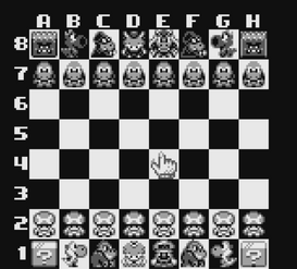 A ROM hack of The Chessmaster (1991) for the Game Boy. This ROM hack reskins the generic chess pieces of The Chessmaster with Super Mario themed characters (including Mario, Peach, Bowser, Bowsette and more), as well as swaps out the Chess Master graphics for Bowser on the title screen. Click here to download the patch.